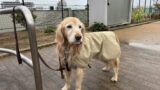 今日もエミリーと海岸公園を散歩しました。朝から連休初日だというのに雨 小雨程度にやや粗い雨粒が混ざる程度です。こんな時はどうしょうか?久しぶりに カッパを着せて東海岸からゆっくり歩きました。